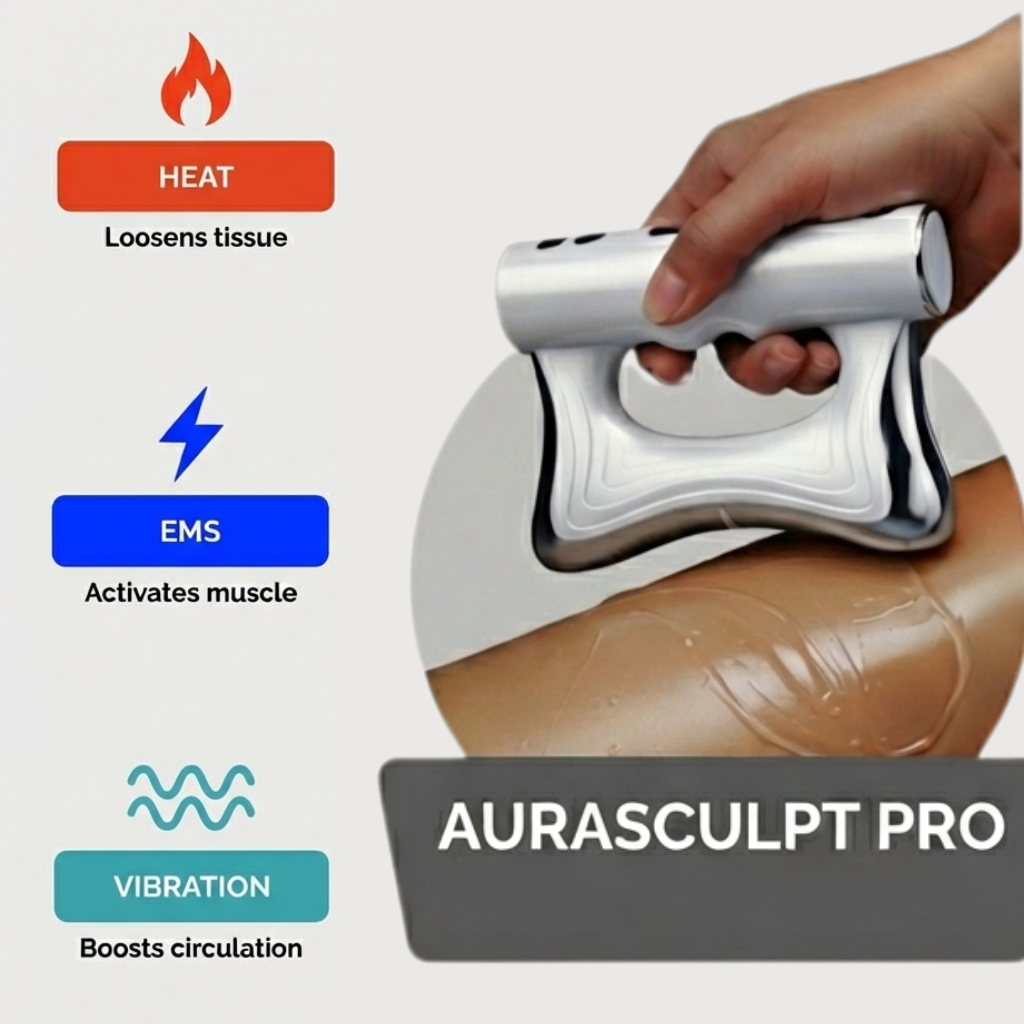 It uses a combination of heat to soften fascia, EMS to activate muscles, and vibration to boost circulation, all working together to create a smoother, more sculpted look.
